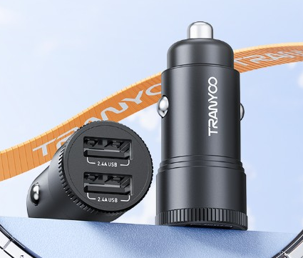 ¡Mantén tus dispositivos cargados mientras conduces con el Cargador para auto TRANYOO T-C20!