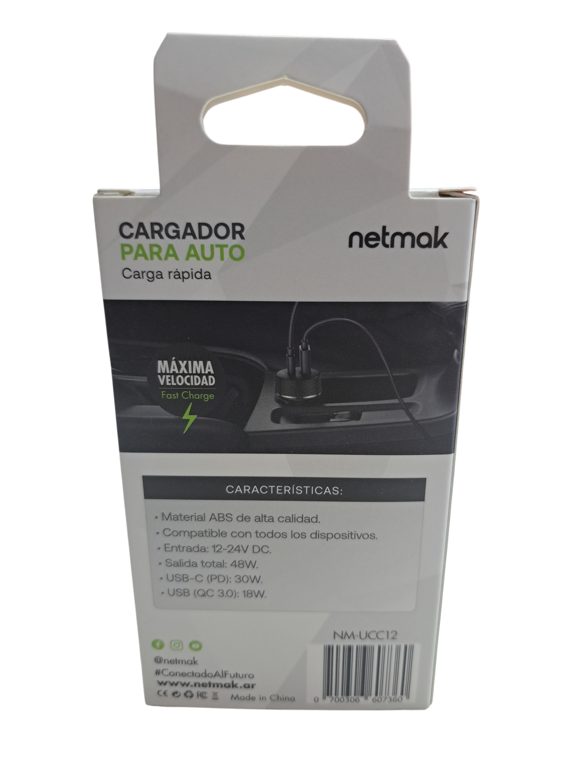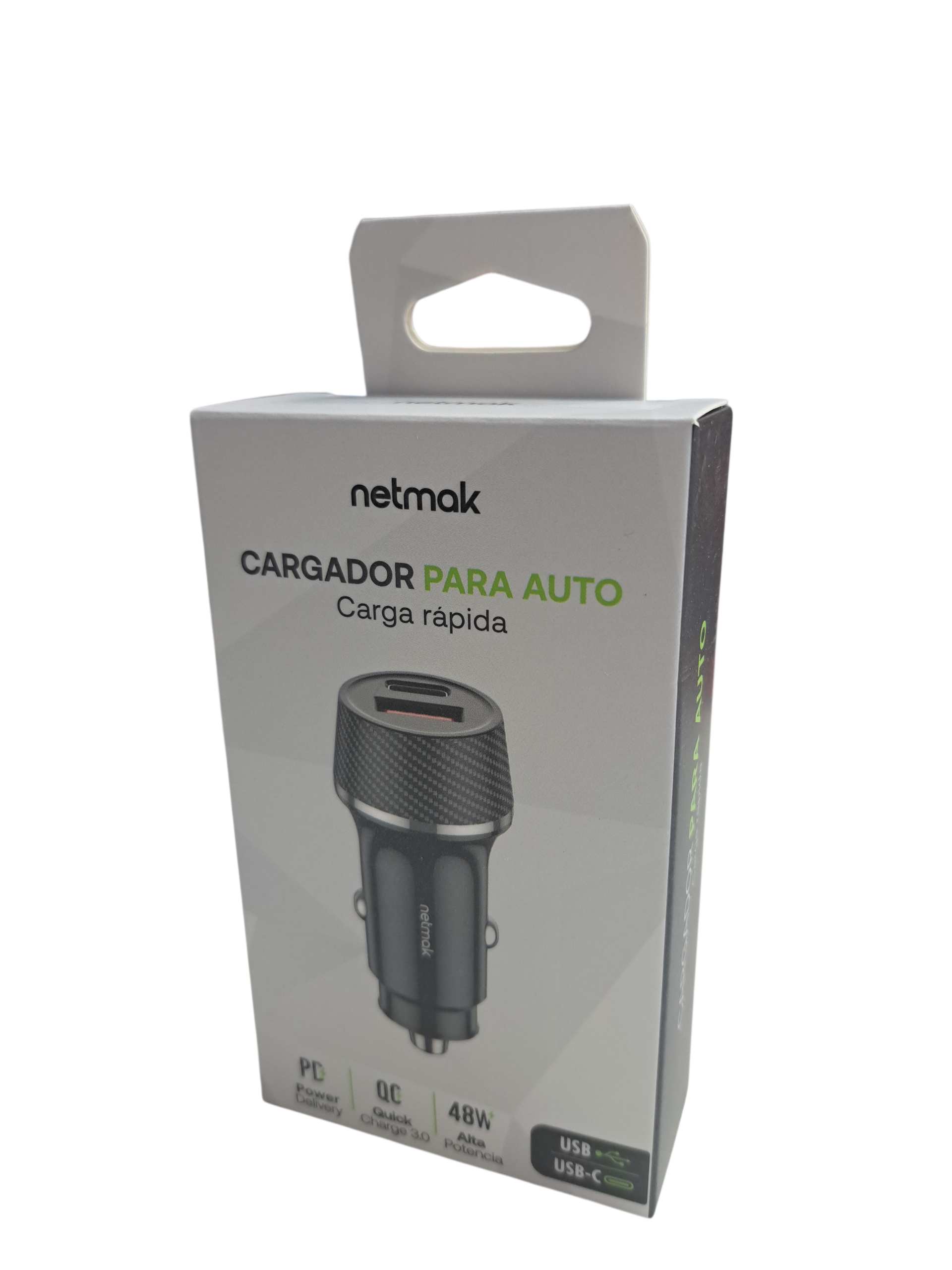 CARGADOR PARA AUTO NETMAK / 48W / USB+USB C / NM-UCC12