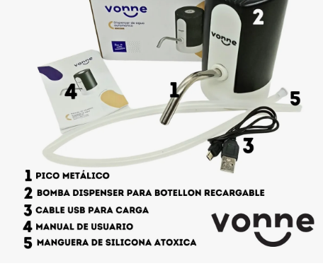 DISPENSER BOMBA DE AGUA VONNE / AUTOMÁTICO / RECARGABLE