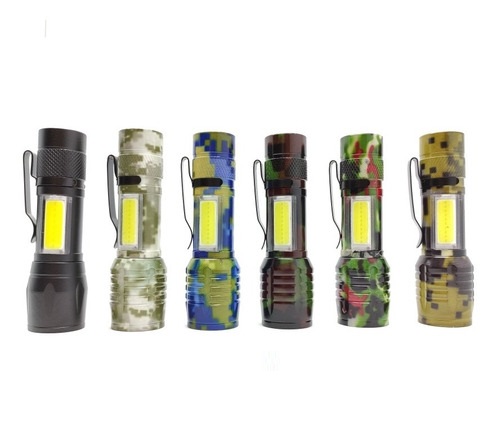 Mini Linterna Tactica Camufladas o negra – Recargable Usb Aluminio Zoom Led