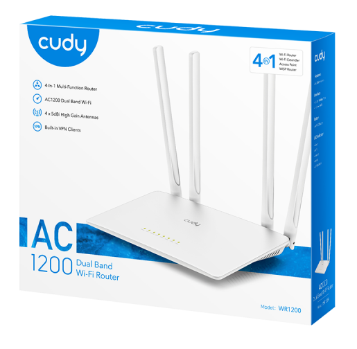 ROUTER WIRELESS CUDY WR1200 / DUAL BAND / 867Mbps 5Ghz / 300Mbps 2.4Ghz